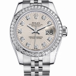 Basic Information Number 178344-72160 VI Brand Rolex Series Datejust Movement Type Automatic Gender Ladies Movement Model Cal. 2235 Movement Type Automatic Manufacturer Rolex Movement Diameter 20mm Movement Thickness 5.95mm Frequency 28800 vibrations per hour Hairspring Parachrom Shock Absorber Paraflex Jewel count: 31; Power reserve: 48 hours; Technical certification: Swiss Official Chronometer Testing Institute (COSC); Appearance: Case diameter: 31 mm; Case thickness: Not available; Dial color: Bronze; Dial shape: Round; Strap color: Silver; Clasp type: Folding clasp, concealed crown buckle; Case back: Solid; Weight: Not available; Water resistance: 100 meters; Hour markers: Roman numerals; Clasp spacing: Not available; Lug spacing: Not available; Materials: Case material: 18k white gold/stainless steel; Dial material: Enlarged VI numerals with diamonds; Bezel material: 18k white gold with diamonds/stainless steel, domed, with diamond-set outer ring; Crystal material: Scratch-resistant sapphire crystal, anti-reflective; Cyclops lens with 2.5x magnification (date window); Crown material: Not available; Strap material: Stainless steel, Oyster, three-link; Clasp material: Stainless steel/white gold; Functions: Date display