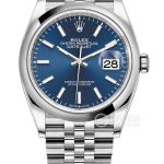 Basic Information Number: m126200-0005; Brand: Rolex; Series: Datejust; Movement Type: Automatic; Gender: Unisex; Movement Model: 3235 Movement Type: Automatic Mechanical; Manufacturer: Rolex; Hairspring: Paramagnetic; Blue Parachrom Hairspring; Shock Protection: High-performance Paraflex shock absorber; Power Reserve: 70 hours; Technical Certifications: Superlative Chronometer Certification; Appearance: Case Diameter: 36mm; Case Thickness: Not Available; Dial Color: Blue; Dial Shape: Round; Strap Color: Silver; Clasp Type: Folding Oysterclasp with 5mm Easylink extension system; Case Back: Solid; Weight: Not Available; Water Resistance: 100 meters; Hour Markers: Bat markers; Luminous; Clasp Spacing: Not Available; Lug Spacing: Not Available; Materials: Case Material: Oystersteel; Dial Material: Not Available; Bezel Material: Domed Bezel; Crystal Material: Scratch-resistant Sapphire Crystal; Crown Material: Screw-down Twinlock Double Water Resistance System; Strap Material: Oystersteel (Jubilee, Five-link); Clasp Material: Oystersteel; Functions: Date Display; Thanks to the enthusiastic netizen “无所从来无所去” for correcting the product parameters.