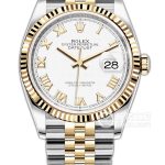 Basic Information Number: m126233-0029 Brand: Rolex Series: Datejust Movement Type: Automatic Mechanical Gender: Unisex Movement Model: 3235 Movement Type: Automatic Mechanical Manufacturer: Rolex Hairspring: Paramagnetic Blue Parachrom Hairspring Shock-resistant: High-performance Paraflex shock absorber Power Reserve: 70 hours Technical Certifications: Superlative Chronometer Certification Appearance: Case Diameter: 36 mm Case Thickness: Not Available Dial Color: White Dial Shape: Round Strap Color: Two-tone Clasp Type: Oysterclasp with 5 mm Easylink extension system Case Back: Solid Case Back Weight: Not Available Water Resistance: 100 meters Hour Markers: Roman numerals Clasp Spacing: Not Available Lug Spacing: Not Available Material: Case Material: 904L Stainless Steel (Oystersteel) Dial material not yet available; Bezel material: 18ct gold/knurled bezel; Crystal material: scratch-resistant sapphire crystal; Crown material: screw-down, Twinlock double waterproof system; Bracelet material: 18ct gold/904L stainless steel (Oystersteel); two-tone; Jubilee model, five-link clasp material: 18ct gold/904L stainless steel (Oystersteel); Functions: Date display, large date.