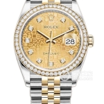 Basic Information Number: m126233-0040 Brand: Rolex Series: Datejust Movement Type: Automatic Mechanical Gender: Ladies’ Movement: 3235 Movement Type: Automatic Mechanical Manufacturer: Rolex Frequency: 28,800 vibrations per hour Hairspring: Paramagnetic Blue Parachrom Hairspring Shock-resistant: High-performance Paraflex shock absorber Jewels: 31 Power Reserve: 70 hours Technical Certifications: Superlative Chronometer Certification Appearance: Case Diameter: 36 mm Case Thickness: Not available Dial Color: Gold Dial Shape: Round Strap Color: Two-tone Clasp Type: Folding Oysterclasp with 5 mm Easylink extension system Case Back: Not available Weight: Not available Water Resistance: 100 meters Hour Marker Type: Bat markers Clasp Spacing: Not available Lug Spacing: Not available Materials: Case Material: Oystersteel Dial Material: Knurled Bezel Material: Gold Crystal Material: Scratch-resistant Sapphire Crystal Crown Material: Screw-down, Twinlock Double Water Resistance System Strap Material: Gold and Steel, Two-tone; Oyster, Three-link Clasp Material: Steel Functions: Date Display