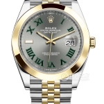 Basic Information Number: m126301-0007 Brand: Rolex Series: Datejust Movement Type: Automatic Mechanical Gender: Men’s Movement: 3235 Movement Type: Automatic Mechanical Manufacturer: Rolex Frequency: 28,800 vibrations per hour Hairspring: Paramagnetic Blue Parachrom Hairspring Shock Absorption: High-performance Paraflex shock absorber Jewels: 31 Power Reserve: 70 hours Technical Certifications: Superlative Chronometer Certification Appearance: Case Diameter: 41 mm Case Thickness: 12 mm Dial Color: Rose Gold Dial Shape: Round Strap Color: Two-tone Clasp Type: Folding Clasp; Oyster Safety Clasp with 5 mm Easylink Extension System Case Back: Screw-down Case Back Weight: Not yet available Water resistance: 100 meters; Hour markers: Diamond-set; Clasp spacing: Not available; Lug spacing: Not available; Materials: Case material: Stainless steel; Dial material: Sundust, diamond-set; Bezel material: 18k rose gold, polished outer ring; Crystal material: Scratch-resistant sapphire crystal, anti-reflective; Cyclops lens with magnifying date window; Crown material: 18k rose gold, winding crown; screw-down Twinlock double waterproof system; Strap material: Stainless steel/18k rose gold; two-tone, Oyster, three-link clasp material: Stainless steel/rose gold; Functions: Date display, large date.