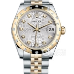 Basic Information Number: m178384-0001 Brand: Rolex Series: Datejust Movement Type: Automatic Mechanical Gender: Ladies’ Movement: Cal. 2235 Movement Type: Automatic Mechanical Manufacturer: Rolex Movement Diameter: 20mm Movement Thickness: 5.95mm Frequency: 28,800 vibrations per hour Hairspring: Parachrom Shock-resistant Paraflex Jewels: 31 Power Reserve: 48 hours Technical Certification: Superlative Chronometer Appearance: Case Diameter: 31mm Case Thickness: Not available Dial Color: Silver Dial Shape: Round Strap Color: Silver Clasp Type: Folding Clasp; Concealed Crown Buckle Case Back: Solid Case Back Weight: Not available Water Resistance: 100 meters Hour Marker Type: Diamond-set Hour Markers Clasp Spacing: Not available Lug Spacing: Not available Materials: Case Material: Stainless Steel Dial Material: Not available Bezel Material: 18k White Gold, Diamond-set Crystal Material: Sapphire Crystal Glass Crown Material: Stainless Steel Strap Material: Stainless Steel, Jubilee, Five-link Clasp Material: Not available Functions: Date Display