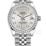 Basic Information Number: m278274-0021 Brand: Rolex Series: Datejust Movement Type: Automatic Mechanical Gender: Ladies’ Movement: 2236 Movement Type: Automatic Mechanical Manufacturer: Rolex Power Reserve: 55 hours Technical Certification: Superlative Chronometer Certification Appearance: Case Diameter: 31 mm Case Thickness: Not Available Dial Color: Dark Grey Dial Shape: Round Strap Color: Silver Clasp Type: Concealed Folding Crown Buckle Case Back: Not Available Weight: Not Available Water Resistance: 100 meters Hour Markers: Roman Numerals Clasp Spacing: Not Available Lug Spacing: Not Available Materials: Case Material: Steel Dial Material: Not Available Bezel Material: White Gold Crystal Material: Scratch-resistant Sapphire Crystal Crown Material: Screw-down, Twinlock Double Water Resistance System Strap Material: Oystersteel, Three-link Clasp Material: Steel Functions: Date Display