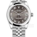 Basic Information ID: m278344rbr-0023 Brand: Rolex Series: Datejust Movement Type: Automatic Gender: Ladies Movement Model: 2236 Movement Type: Automatic Manufacturer: Rolex Power Reserve: 55 hours Technical Certification: Superlative Chronometer Certification Appearance: Case Diameter: 31 mm Case Thickness: Not available Dial Color: Dark Grey Dial Shape: Round Strap Color: Silver Clasp Type: Concealed Folding Crown Buckle Case Back: Not available Weight: Not available Water Resistance: 100 meters Hour Markers: Roman numerals Clasp Spacing: Not available Lug Spacing: Not available Materials: Case Material: Steel Dial Material: Not available Bezel Material: White Gold with Diamonds Crystal Material: Sapphire Crystal Crown Material: Screw-down, Twinlock Double Water Resistance System Strap Material: Oystersteel, Three-link Clasp Material: Oystersteel Functions: Date Display