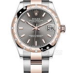 Basic Information Number: m278381rbr-0001; Brand: Rolex; Series: Datejust; Movement Type: Automatic; Gender: Women’s; Movement Model: 2236 Movement Type: Automatic Mechanical; Manufacturer: Rolex; Power Reserve: 55 Hours; Technical Certification: Superlative Chronometer Certification; Appearance: Case Diameter: 31mm; Case Thickness: Not Available; Dial Color: Rose Gold; Dial Shape: Round; Strap Color: Two-Tone; Clasp Type: Folding Oysterclasp with 5mm Easylink Extension System; Case Back: Screw-Down; Weight: Not Available; Water Resistance: 100 Meters; Hour Markers: Roman Numerals; Clasp Spacing: Not Available; Lug Spacing: Not Available; Materials: Case Material: Oyster Steel; Dial Material: Not Available; Bezel Material: 18ct Everose Gold with Diamond-Set Bezel; Crystal Material: Scratch-Resistant Sapphire Crystal with Cyclops Lens for Date Magnification; Crown Material: Screw-Down Twin Lock Double Water Resistance System; Strap Material: Everose Steel (combination of Oyster Steel and 18ct Everose Gold), Two-Tone; Oyster, Three-Link Clasp Material: Oyster Steel; Functions: Date Display