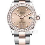 Basic Information Number: m278381rbr-0029; Brand: Rolex; Series: Datejust; Movement Type: Automatic; Gender: Women’s; Movement Model: 2236 Movement Type: Automatic Mechanical; Manufacturer: Rolex; Power Reserve: 55 Hours; Technical Certification: Superlative Chronometer Certification; Appearance: Case Diameter: 31mm; Case Thickness: Not Available; Dial Color: Rhodium White; Dial Shape: Round; Strap Color: Two-Tone; Clasp Type: Folding Oysterclasp with 5mm Easylink Extension System; Case Back: Screw-Down; Weight: Not Available; Water Resistance: 100 Meters; Hour Markers: Roman Numerals/Diamond Set; Clasp Spacing: Not Available; Lug Spacing: Not Available; Materials: Case Material: Oyster Steel; Dial Material: Enlarged VI numerals with diamonds; Bezel Material: 18ct Everose Gold, diamond-set outer ring; Crystal Material: Scratch-resistant sapphire crystal with Cyclops lens for magnification of date; Crown Material: Screw-Down Twinlock Double Water Resistance System; Strap Material: Everose Steel (combination of Oyster Steel and 18ct Everose Gold), two-tone; Oyster, three-link clasp Material: Oyster Steel; Functions: Date Display