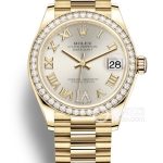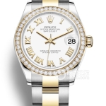 Basic Information Number: m278383rbr-0027; Brand: Rolex; Series: Datejust; Movement Type: Automatic; Gender: Women’s; Movement Model: 2236 Movement Type: Automatic Mechanical; Manufacturer: Rolex; Power Reserve: 55 Hours; Technical Certification: Superlative Chronometer Certification; Appearance: Case Diameter: 31mm; Case Thickness: Not Available; Dial Color: White; Dial Shape: Round; Strap Color: Two-Tone; Clasp Type: Folding Oysterclasp with 5mm Easylink Extension System; Case Back: Screw-Down Case Back; Weight: Not Available; Water Resistance: 100 meters; Hour Markers: Diamond-set; Clasp Spacing: Not Available; Lug Spacing: Not Available; Materials: Case Material: Oystersteel; Dial Material: Mother-of-Pearl, 18ct Gold with Diamond Setting; Bezel Material: 18ct Yellow Gold, Diamond-set Bezel; Crystal Material: Scratch-resistant Sapphire Crystal with Cyclops Lens for Date Magnification; Crown Material: Screw-Down Twin Lock Double Water Resistance System; Strap Material: Gold and Steel (combination of Oystersteel and 18ct Yellow Gold), Two-Tone; Oyster, Three-Link Clasp Material: Oystersteel; Functions: Date Display