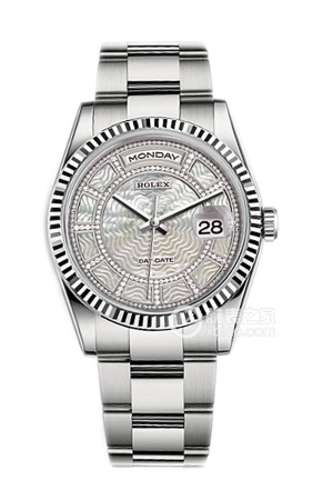 Basic Information: Model Number 118135; Pink Dial with Diamonds; Brand: Rolex; Series: Day-Date; Movement Type: Automatic; Gender: Ladies; Movement Model: 3155; Movement Type: Automatic; Manufacturer: Omega; Technical Certification: Superlative Chronometer; Appearance: Case Diameter: 36mm; Case Thickness: Not Available; Dial Color: Pink; Dial Shape: Round; Strap Color: Smoky Grey; Clasp Type: Folding Oyster Buckle; Case Back: Solid; Weight: Not Available; Water Resistance: 100 meters; Hour Markers: Diamond-set; Clasp Spacing: Not Available; Lug Spacing: Not Available; Materials: Case Material: 18K Rose Gold; Dial Material: Pink with Diamonds, 6 and 9 O’Clock Markers with Bagier Diamonds; Bezel Material: 18K Rose Gold, Fluted Bezel; Crystal Material: Scratch-resistant Sapphire Crystal, Anti-reflective; Cyclops Lens (2.5x) for Date Window; Crown Material: 18K Rose Gold; Strap Material: Leather Strap; Clasp Material: 18K Rose Gold; Functions: Date Display, Day Display