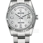 Basic Information: Model Number 118205; Diamond-set Bull’s Eye Dial; Brand: Rolex; Series: Day-Date; Movement Type: Automatic; Gender: Unisex; Movement Model: 3155; Manufacturer: Omega; Technical Certification: Superlative Chronometer; Appearance: Case Diameter: 36mm; Case Thickness: Not Available; Dial Color: Brown; Dial Shape: Round; Strap Color: Gold; Clasp Type: Folding Clasp, Concealed Crown Buckle; Case Back: Not Available; Weight: Not Available; Water Resistance: 100 meters; Hour Markers: Diamond-set; Clasp Spacing: Not Available; Lug Spacing: Not Available; Materials: Case Material: 18k Rose Gold; Dial Material: Bull’s Eye with Diamonds, 6 and 9 O’Clock Markers with Bagier Diamonds; Bezel Material: Not Available; Crystal Material: Scratch-resistant Sapphire Crystal, Anti-reflective; Cyclops Lens (2.5x) for Date Window; Crown Material: 18k Rose Gold, Screw-down Twin Lock Double Water Resistance System; Strap Material: 18k Rose Gold; Clasp Material: 18k Rose Gold; Functions: Date Display, Day Display