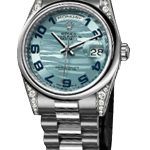 Rolex Day-Date 118206 Blue Wave Pattern Automatic mechanical, 950 platinum set with diamonds, 36mm