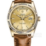 Rolex Day-Date 118138 Champagne Automatic mechanical movement, 18K gold, triangular grooved outer ring, 36mm