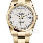 Rolex Day-Date 118208 White Dial Automatic machinery, 18k gold, 36mm