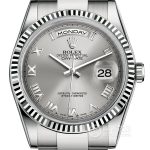 Basic Information Number 118239-0145 Brand Rolex Series Day-Date Movement Type Automatic Mechanical Gender Men’s Movement Movement Model 3155 Movement Type Automatic Mechanical Manufacturer Rolex Frequency 28,800 vibrations per hour Power Reserve 48 hours Technical Certifications Superlative Chronometer Certification Appearance Case Diameter: 36 mm Case Thickness: Not available Dial Color: Rhodium White Dial Shape: Round Strap Color: Silver Clasp Type: Folding Clasp Case Back: Solid Case Back Weight: Not available Water Resistance: 100 meters Hour Markers: Roman numerals Clasp Spacing: Not available Lug Spacing: Not available Materials Case Material 18k White Gold Dial Material Not available Bezel Material 18k White Gold/Knurled Bezel Crystal Material Sapphire Crystal Glass Crown Material Not available Strap Material 18k White Gold Clasp Material 18k White Gold Functions Date Display Day Display
