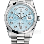 Basic Information Number: m118138-0057 Brand: Rolex Series: Day-Date Movement Type: Automatic Mechanical Gender: Unisex Movement Model: 3155 Movement Type: Automatic Mechanical Manufacturer: Omega Technical Certification: Superlative Chronometer Certification Appearance: Case Diameter: 36mm Case Thickness: Not Available Dial Color: Cognac Dial Shape: Round Strap Color: Green Clasp Type: Folding Oyster Clasp Case Back: Not Available Weight: Not Available Water Resistance: 100 meters Hour Marker Type: Bat Hour Markers Luminous Clasp Spacing: Not Available Lug Spacing: Not Available Materials: Case Material: 18K gold, with triangular knurled outer ring Dial Material: Easy-to-read Chromalight luminous display with long-lasting blue luminous material Bezel Material: Not Available Crystal Material: Scratch-resistant sapphire crystal, anti-reflective Cyclops magnifying date window Crown Material: 18K gold, screw-down Twinlock double waterproof system Strap Material: Leather Strap Clasp Material: 18K gold Functions: Date display, Day display