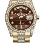 Basic Information Number: m118388-0193 Brand: Rolex Series: Day-Date Movement Type: Automatic Mechanical Gender: Men’s Movement Model: 3155 Movement Type: Automatic Mechanical Manufacturer: Rolex Frequency: 28,800 vibrations per hour Power Reserve: 48 hours Technical Certifications: Superlative Chronometer Certification Appearance: Case Diameter: 36 mm Case Thickness: Not available Dial Color: Black Dial Shape: Round Strap Color: Gold Clasp Type: Concealed Folding Crown Buckle Case Back: Solid Case Back Weight: Not available Water Resistance: 100 meters Hour Markers Type: Diamond-set Hour Markers Clasp Spacing: Not available Lug Spacing: Not available Materials: Case Material: 18k gold with diamonds Dial Material: Mother-of-pearl, commemorative pattern with diamonds Bezel Material: Diamond-set Crystal Material: Scratch-resistant sapphire crystal, anti-reflective Cyclops magnifying date window Crown Material: 18k gold, screw-down Twinlock double waterproof system Strap Material: 18k gold; Oyster, three-link clasp Material: 18k gold Functions: Date display, Day display
