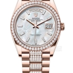 Basic Information Number: m128398tbr-0026 Brand: Rolex Series: Day-Date Movement Type: Automatic Gender: Women’s Movement Model: 3255 Movement Type: Automatic Manufacturer: Rolex Balance Wheel: Extra Large Inertia, Fine Adjustment, Balance Wheel Frequency: 28,800 rpm Oscillations per Hour: Hairspring: Paramagnetic Blue: Parachrom Hairspring: Shock-resistant High-performance Paraflex Shock-absorbing device, 31 jewels, 70-hour power reserve, Superlative Chronometer certification. Case diameter: 36mm, Case thickness: Not available, Dial color: White, Dial shape: Round, Strap color: Gold, Clasp type: Concealed folding crown buckle, Case back: Solid, Weight: Not available, Water resistance: 100 meters, Hour markers: Bat markers, Roman numerals, Clasp spacing: Not available, Lug spacing: Not available, Materials: Case material: 18k gold, Dial material: Not available, Bezel material: 18k gold, diamond-set, Crystal material: Scratch-resistant sapphire crystal, Cyclops lens for magnification, Date display, Crown material: Screw-down, Twinlock double waterproof system, Strap material: 18k gold, President model, three-link clasp, Clasp material: Not available, Functions: Day display, Large date.