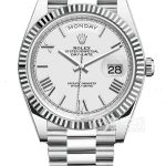 Basic Information Number: m228236-0010 Brand: Rolex Series: Day-Date Movement Type: Automatic Gender: Men’s Movement Model: 3255 Movement Type: Automatic Manufacturer: Rolex Balance Wheel: Extra Large Inertia, Fine Adjustment, Balance Wheel Frequency: 28,800 rpm Hairspring: Paramagnetic Blue: Parachrom Hairspring: Shock-resistant High-performance Paraflex Shock-absorbing device, 31 jewels, 70-hour power reserve, Superlative Chronometer certification. Case diameter: 40mm, Case thickness: Not available, Dial color: White, Dial shape: Round, Strap color: Silver, Clasp type: Concealed folding crown buckle, Case back: Screw-down, Weight: Not available, Water resistance: 100 meters, Hour markers: Roman numerals, Clasp spacing: Not available, Lug spacing: Not available, Materials: Case material: Platinum, Dial material: Not available, Bezel material: Platinum, fluted outer ring, Crystal material: Scratch-resistant sapphire crystal, Cyclops lens for magnification, Date display, Crown material: Screw-down, Twinlock double waterproof system, Strap material: Platinum, President type, three-link clasp, Clasp material: Platinum. Functions: Date display, Day display.