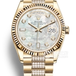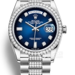 Basic Information Number: m228398tbr-0004 Brand: Rolex Series: Day-Date Movement Type: Automatic Gender: Men’s Movement Model: 3255 Movement Type: Automatic Manufacturer: Rolex Balance Wheel: Extra Large Inertia, Fine Adjustment, Balance Wheel Frequency: 28,800 rpm Oscillations per Hour: Hairspring: Paramagnetic Blue: Parachrom Hairspring: Shock-resistant High-performance Paraflex Shock-absorbing device, 31 jewels, 70-hour power reserve, Superlative Chronometer certification. Case diameter: 40mm, Case thickness: Not available, Dial color: Black, Dial shape: Round, Strap color: Gold, Clasp type: Concealed folding crown buckle, Case back: Solid, Weight: Not available, Water resistance: 100 meters, Hour markers: Bat markers, Luminous, Clasp spacing: Not available, Lug spacing: Not available. Materials: Case material: 18k gold, Dial material: Bezel material: Diamond-set, Crystal material: Scratch-resistant sapphire crystal, Crown material: Screw-down Twinlock double waterproof system, Strap material: 18k gold, President type, three-link arched clasp material: 18k gold. Functions: Date display, Day display.