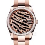 Basic Information ID 116185 BBR Rose Gold Strap Brand Rolex Series Lady-Datejust Movement Type Automatic Gender Women’s Movement Movement Type Automatic Technical Certification Super Chronometer Certification Appearance Case Diameter: 36mm Case Thickness: Not Available Dial Color: Diamond Set Dial Shape: Round Strap Color: Gold Buckle Type: Crown Buckle Case Back: Not Available Weight: Not Available Water Resistance: 100 meters Hour Marker Type: Not Available Buckle Spacing: Not Available Lug Spacing: Not Available Materials Case Material 18k Rose Gold Diamond Set Dial Material 18k Rose Gold Bezel Material Not Available Crystal Material Sapphire Crystal Glass Crown Material 18k Rose Gold Strap Material 18k Rose Gold Buckle Material 18k Rose Gold Functions Date Display