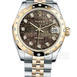 Basic Information: Number 178243; Champagne-colored commemorative dial; Brand: Rolex; Series: Ladies’ Datejust; Movement Type: Automatic; Gender: Women’s; Movement Model: Cal. 2235; Movement Type: Automatic; Manufacturer: Rolex; Movement Diameter: 20mm; Movement Thickness: 5.95mm; Frequency: 28,800 vibrations per hour; Hairspring: Parachrom; Shock-resistant: Paraflex. Jewel count: 31; Power reserve: 48 hours; Technical certification: Superlative Chronometer; Appearance: Case diameter: 31 mm; Case thickness: Not available; Dial color: Champagne; Dial shape: Round; Strap color: Two-tone; Clasp type: Folding clasp, Oyster clasp with 5 mm Easylink extension system; Case back: Solid; Weight: Not available; Water resistance: 100 meters; Hour markers: Diamond-set; Clasp spacing: Not available; Lug spacing: Not available; Materials: Case material: Stainless steel; Dial material: Champagne-colored, commemorative pattern with diamonds; Bezel material: 18k gold, domed outer ring; Crystal material: Scratch-resistant sapphire crystal, anti-reflective; Cyclops lens (2.5x magnification) for date window; Crown material: 18k gold; Strap material: 18k gold/stainless steel, commemorative model, five-link clasp material: Not available; Functions: Date display.
