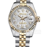 Basic Information: ID 178271; Brand: Rolex; Series: Ladies’ Datejust; Movement Type: Automatic; Gender: Women’s; Movement Model: Cal. 2235; Manufacturer: Rolex; Diameter: 20mm; Thickness: 5.95mm; Frequency: 28,800 vibrations per hour; Hairspring: Parachrom; Shock-resistant: Paraflex. Jewel count: 31; Power reserve: 48 hours; Technical certification: Superlative Chronometer; Appearance: Case diameter: 31 mm; Case thickness: Not available; Dial color: White; Dial shape: Round; Strap color: Two-tone; Clasp type: Folding clasp, concealed folding crown buckle; Case back: Solid; Weight: Not available; Water resistance: 100 meters; Hour markers: Diamond-set; Clasp spacing: Not available; Lug spacing: Not available; Materials: Case material: Stainless steel; Dial material: Diamond-set; Bezel material: 18k rose gold, fluted outer ring; Crystal material: Scratch-resistant sapphire crystal, anti-reflective; Cyclops lens (2.5x magnification) for date window; Crown material: 18k rose gold; Strap material: 18k rose gold/stainless steel, Jubilee, five-link bracelet; Clasp material: Not available; Functions: Date display.
