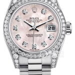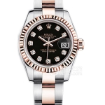 Basic Information Number 178273; Gold Dial Oyster Strap; Brand: Rolex; Series: Ladies’ Datejust; Movement Type: Automatic; Gender: Men’s; Movement Model: Cal. 2235; Movement Type: Automatic; Manufacturer: Rolex; Movement Diameter: 20 mm; Movement Thickness: 5.95 mm; Frequency: 28,800 vibrations per hour; Hairspring: Parachrom; Shock-resistant: Paraflex Jewel count: 31; Power reserve: 48 hours; Technical certification: Superlative Chronometer; Appearance: Case diameter: 31 mm; Case thickness: 7 mm; Dial color: Gold; Dial shape: Round; Strap color: Two-tone; Clasp type: Concealed crown clasp; Case back: Solid; Weight: Not available; Water resistance: 100 meters; Hour markers: Bat markers; Luminous; Clasp spacing: Not available; Lug spacing: Not available; Materials: Case material: Stainless steel; Dial material: Not available; Bezel material: 18k gold, fluted bezel; Crystal material: Sapphire crystal; Crown material: 18k gold; Strap material: 18k gold and stainless steel; Oyster, three-link clasp material: 18k gold and stainless steel; Functions: Date display