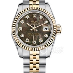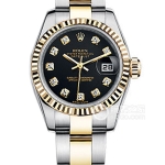 Basic Information: Number 178313 Silver Dial Brand: Rolex Series: Women’s Datejust Movement Type: Automatic Gender: Women’s Movement Model: Cal. 2235 Movement Type: Automatic Manufacturer: Rolex Movement Diameter: 20mm Movement Thickness: 5.95mm Frequency: 28,800 vibrations per hour Hairspring: Parachrom Shock Absorber: Paraflex Jewel count: 31; Power reserve: 48 hours; Technical certification: Superlative Chronometer certification; Appearance: Case diameter: 31 mm; Case thickness: Not available; Dial color: Silver; Dial shape: Round; Strap color: Two-tone; Clasp type: Folding clasp; Concealed folding crown buckle; Case back: Solid; Weight: Not available; Water resistance: 100 meters; Hour markers: Roman numerals; Clasp spacing: Not available; Lug spacing: Not available; Materials: Case material: Stainless steel; Dial material: Silver with diamonds; Enlarged VI Roman numerals with diamonds; Bezel material: 18k gold with diamonds, stainless steel; Crystal material: Scratch-resistant sapphire crystal glass, anti-reflective; Cyclops lens with magnifying date window; Crown material: 18k gold; Strap material: 18k gold/stainless steel; Two-tone, Jubilee, five-link clasp material: Stainless steel; Functions: Date display