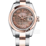 Basic Information Number 179161 Black Dial Brand Rolex Series Women’s Datejust Movement Type Automatic Gender Women’s Movement Model Cal. 2235 Movement Type Automatic Manufacturer Rolex Movement Diameter 20mm Movement Thickness 5.95mm Frequency 28800 rpm Hairspring Parachrom Shock Absorber Paraflex Jewel count: 31; Power reserve: 48 hours; Technical certification: Superlative Chronometer certification; Appearance: Case diameter: 26mm; Case thickness: Not available; Dial color: Black; Dial shape: Round; Strap color: Two-tone; Clasp type: Folding clasp; Case back: Not available; Weight: Not available; Water resistance: 100 meters; Hour markers: Roman numerals; Clasp spacing: Not available; Lug spacing: Not available; Materials: Case material: 18k rose gold and stainless steel; Dial material: Not available; Bezel material: 18k rose gold and stainless steel, domed outer ring; Crystal material: Sapphire crystal; Crown material: Rose gold; Strap material: 18k rose gold and stainless steel; two-tone, Oyster, three-link clasp material: 18k rose gold and stainless steel; Functions: Date display