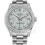 Basic Information: ID 179161; Brown Roman numeral dial; Oyster bracelet; Brand: Rolex; Series: Ladies’ Datejust; Movement Type: Automatic; Gender: Women’s; Movement Model: Cal. 2235; Movement Type: Automatic; Manufacturer: Rolex; Movement Diameter: 20mm; Movement Thickness: 5.95mm; Frequency: 28,800 vibrations per hour; Hairspring: Parachrom; Shock-resistant: Paraflex. Jewel count: 31; Power reserve: 48 hours; Technical certification: Superlative Chronometer certification; Appearance: Case diameter: 26mm; Case thickness: Not available; Dial color: Brown; Dial shape: Round; Strap color: Two-tone; Clasp type: Folding clasp; Case back: Not available; Weight: Not available; Water resistance: 100 meters; Hour markers: Roman numerals; Clasp spacing: Not available; Lug spacing: Not available; Materials: Case material: 18k rose gold, stainless steel; Dial material: Enlarged VI numerals with diamonds; Bezel material: 18k rose gold, stainless steel; Crystal material: Sapphire crystal glass; Crown material: 18k rose gold; Strap material: 18k rose gold, stainless steel; Two-tone, Oyster, three-link clasp material: Stainless steel; Functions: Date display