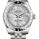 Basic Information: ID 179161; Pink Commemorative Dial; Oyster Strap; Brand: Rolex; Series: Ladies’ Datejust; Movement Type: Automatic; Gender: Women’s; Movement Model: Cal. 2235; Movement Type: Automatic; Manufacturer: Rolex; Movement Diameter: 20mm; Movement Thickness: 5.95mm; Frequency: 28,800 vibrations per hour; Hairspring: Parachrom; Shock-resistant: Paraflex. Jewel count: 31; Power reserve: 48 hours; Technical certification: Superlative Chronometer certification; Appearance: Case diameter: 26mm; Case thickness: Not available; Dial color: Pink; Dial shape: Round; Strap color: Two-tone; Clasp type: Folding clasp; Case back: Not available; Weight: Not available; Water resistance: 100 meters; Hour markers: Diamond-set; Clasp spacing: Not available; Lug spacing: Not available; Materials: Case material: 18k rose gold, stainless steel; Dial material: Pink commemorative pattern with diamonds; Bezel material: 18k rose gold, stainless steel; Crystal material: Sapphire crystal glass; Crown material: 18k rose gold; Strap material: 18k rose gold, stainless steel, two-tone, Oyster, three-link clasp; Clasp material: Stainless steel; Functions: Date display