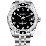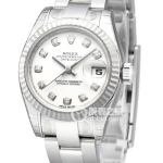 Basic Information: ID 179163, Diamond-set Dial, Oyster Strap, Brand: Rolex, Series: Ladies’ Datejust, Movement Type: Automatic, Gender: Women’s, Movement Model: Cal. 2235, Movement Type: Automatic, Manufacturer: Rolex, Movement Diameter: 20mm, Movement Thickness: 5.95mm, Frequency: 28,800 vibrations per hour, Hairspring: Parachrom, Shock-resistant: Paraflex Jewel count: 31; Power reserve: 48 hours; Technical certification: Superlative Chronometer certification; Appearance: Case diameter: 26mm; Case thickness: Not available; Dial color: Gold; Dial shape: Round; Strap color: Two-tone; Clasp type: Folding clasp, Oyster clasp with 5mm Easylink extension system; Case back: Not available; Weight: Not available; Water resistance: 100 meters; Hour markers: Diamond-set; Clasp spacing: Not available; Lug spacing: Not available; Materials: Case material: Stainless steel; Dial material: Yellow gold with diamonds; Bezel material: 18k gold, domed outer ring; Crystal material: Scratch-resistant sapphire crystal, anti-reflective; Cyclops lens (2.5x) for date window; Crown material: 18k gold; Strap material: 18k gold/stainless steel, two-tone, Oyster, three-link clasp; Clasp material: Stainless steel; Functions: Date display