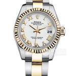 Basic Information Number 179171 White Mother-of-Pearl Dial Brand Rolex Series Women’s Datejust Movement Type Automatic Gender Women’s Movement Model Cal. 2235 Movement Type Automatic Manufacturer Rolex Movement Diameter 20mm Movement Thickness 5.95mm Frequency 28800 rpm Hairspring Parachrom Shock Absorber Paraflex Jewel count: 31; Power reserve: 48 hours; Technical certification: Superlative Chronometer certification; Appearance: Case diameter: 26mm; Case thickness: Not available; Dial color: White; Dial shape: Round; Strap color: Two-tone; Clasp type: Concealed crown clasp; Case back: Not available; Weight: Not available; Water resistance: 100 meters; Hour markers: Roman numerals; Clasp spacing: Not available; Lug spacing: Not available; Materials: Case material: 18k rose gold/stainless steel, with triangular fluted outer ring; Dial material: White mother-of-pearl set with diamonds; Enlarged VI Roman numerals set with diamonds; Bezel material: Not available; Crystal material: Sapphire crystal; Crown material: 18k rose gold; Strap material: 18k rose gold/stainless steel; Two-tone, Jubilee, five-link clasp material: 18k rose gold/stainless steel; Functions: Date display