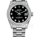 Basic Information: Model No. 179173, Black Dial with Diamonds, Brand: Rolex, Series: Ladies’ Datejust, Movement Type: Automatic, Gender: Ladies, Movement Model: CAL.2235, Movement Type: Automatic, Power Reserve: 48 Hours, Technical Certification: Superlative Chronometer Certification, Appearance: Case Diameter: 26mm, Case Thickness: Not Available, Dial Color: Black, Dial Shape: Round, Strap Color: Two-Tone, Clasp Type: Folding Clasp; Oyster Clasp with 5mm Easylink Extension System, Case Back: Not Available, Weight: Not Available, Water Resistance: 100m, Hour Markers: Diamond-set, Hour Markers, Clasp Spacing: Not Available, Lug Spacing: Not Available, Materials: Case Material: Stainless Steel, Dial Material: Black with Diamonds, Bezel Material: 18k Gold, Fluted Bezel, Crystal Material: Scratch-resistant Sapphire Crystal, Anti-reflective, Cyclops Lens (2.5x) for Date Window, Crown Material: 18k Gold, Strap Material: 18k Gold/Stainless Steel; Two-Tone, Oyster, Three-Link Clasp Material: 18k Gold/Stainless Steel, Functions: Date Display