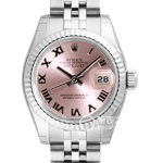 Basic Information: ID 179174, Silver Roman Dial, Brand: Rolex, Series: Ladies’ Datejust, Movement Type: Automatic, Gender: Ladies, Movement Model: Cal. 2235, Movement Type: Automatic, Manufacturer: Rolex, Movement Diameter: 20mm, Movement Thickness: 5.95mm, Frequency: 28,800 vibrations per hour, Hairspring: Parachrom, Shock-resistant, Paraflex, Jewels: 31, Power Reserve: 48 hours, Technical Certifications: Superlative Chronometer Certification, Appearance: Case Diameter: 26mm, Case Thickness: Not Available, Dial Color: Silver, Dial Shape: Round, Strap Color: Silver, Clasp Type: Folding Clasp; Oyster Clasp with 5mm Easylink Extension System, Case Back: Solid, Weight: Not Available, Water Resistance: 100 meters, Hour Marker Type: Not Available, Clasp Spacing: Not Available, Lug Spacing: Not Available, Materials: Case Material: 18k White Gold/Stainless Steel, Dial Material: Not Available, Bezel Material: Not Available, Crystal Material: Sapphire Crystal, Crown Material: Not Available, Strap Material: Stainless Steel; Oyster, Three-Link Clasp Material: Not Available, Functions: Date Display