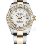 Basic Information Number: 179313-63133G Brand: Rolex Series: Ladies’ Datejust Movement Type: Automatic Gender: Women’s Movement Model: Cal. 2235 Movement Type: Automatic Manufacturer: Rolex Movement Diameter: 20mm Movement Thickness: 5.95mm Frequency: 28,800 vibrations per hour Hairspring: Parachrom Shock Absorber: Paraflex Jewel count: 31; Power reserve: 48 hours; Technical certification: Superlative Chronometer certification; Appearance: Case diameter: 26mm; Case thickness: Not available; Dial color: Gold; Dial shape: Round; Strap color: Two-tone; Clasp type: Folding clasp; Case back: Solid; Weight: Not available; Water resistance: 100 meters; Hour markers: Diamond-set; Clasp spacing: Not available; Lug spacing: Not available; Materials: Case material: Stainless steel; Dial material: Not available; Bezel material: 18k gold with diamonds; Crystal material: Scratch-resistant sapphire crystal with anti-reflective properties; Cyclops lens with 2.5x magnification (date window); Crown material: 18k gold; Strap material: 18k gold/stainless steel; Two-tone; Clasp material: Stainless steel; Functions: Date display