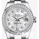 Basic Information Number 179384 White Mother-of-Pearl Diamond-Set Dial Brand Rolex Series Lady-Datetype Movement Type Automatic Mechanical Gender Ladies Movement Model Cal. 2235 Movement Type Automatic Mechanical Manufacturer Rolex Movement Diameter 20mm Movement Thickness 5.95mm Frequency 28,800 vibrations per hour Hairspring Parachrom Shock-resistant Paraflex Jewels 31 Power Reserve 48 hours Technical Certifications Superlative Chronometer Certification Appearance Case Diameter: 26mm Case Thickness: Not available Dial Color: White Dial Shape: Round Strap Color: Silver Clasp Type: Folding Clasp Case Back: Solid Case Back Weight: Not available Water Resistance: 100 meters Hour Marker Type: Diamond-set Hour Markers Clasp Spacing: Not available Lug Spacing: Not available Materials Case Material Stainless Steel, 18k White Gold Dial Material White Mother-of-Pearl Diamond-set Bezel Material Stainless Steel, 18k White Gold Diamond-set Crystal Material Sapphire Crystal Glass Crown Material Stainless Steel Strap Material Stainless Steel Clasp Material Stainless Steel Functions Date Display