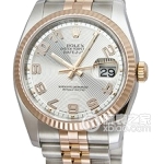 Basic Information ID 116034 Blue Dial Brand Rolex Series Oyster Perpetual Movement Type Automatic Mechanical Gender Ladies Movement Model 3130 Movement Type Automatic Mechanical Manufacturer Rolex Power Reserve 48 Hours Technical Certification Swiss Observatory Certification Appearance Case Diameter: 36 mm Case Thickness: 12 mm Dial Color: Blue Dial Shape: Round Strap Color: Silver Clasp Type: Folding Clasp Case Back: Solid Case Back Weight: Not Available Water Resistance: 100 meters Hour Marker Type: Bat Hour Markers Arabic Numerals Luminous Clasp Spacing: Not Available Lug Spacing: Not Available Materials Case Material 18K White Gold-Steel Dial Material: Not Available Bezel Material: Knurled Outer Bezel Crystal Material: Sapphire Crystal Glass Crown Material: Steel Strap Material: Steel Clasp Material: Steel Functions This watch has no other special functions.