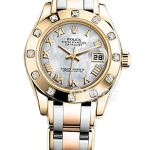 Basic Information Number 80298 Roman numeral hour markers, pavé diamond setting Brand: Rolex Series: PEARLMASTER Movement Type: Automatic Gender: Ladies Movement Type: Automatic Technical Certification: Superlative Chronometer Certification Appearance: Case Diameter: 29mm Case Thickness: Not available Dial Color: Diamond-set Dial Shape: Round Strap Color: Gold Clasp Type: Folding Clasp Case Back: Not available Weight: Not available Water Resistance: 100 meters Hour Marker Type: Roman numerals Clasp Spacing: Not available Lug Spacing: Not available Materials: Case Material: 18k gold Dial Material: Diamond-set Bezel Material: 18k gold, Diamond-set Crystal Material: Sapphire Crystal Crown Material: 18k gold Strap Material: 18k gold, Diamond-set Clasp Material: 18k gold Functions: Date Display