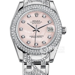 Basic Information: ID: 80318; White Dial; Brand: Rolex; Series: PEARLMASTER; Movement Type: Automatic; Gender: Women’s; Movement Model: Cal. 2235; Manufacturer: Rolex; Movement Diameter: 20mm; Movement Thickness: 5.95mm; Frequency: 28,800 vibrations per hour; Hairspring: Parachrom; Shock-resistant: Paraflex. Jewel count: 31; Power reserve: 48 hours; Technical certification: Superlative Chronometer certification; Appearance: Case diameter: 29 mm; Case thickness: Not available; Dial color: White; Dial shape: Round; Strap color: Two-tone; Clasp type: Folding clasp, concealed folding crown buckle; Case back: Solid; Weight: Not available; Water resistance: 100 meters; Hour markers: Roman numerals; Clasp spacing: Not available; Lug spacing: Not available; Materials: Case material: 18k gold; Dial material: Not available; Bezel material: Diamond-set; Crystal material: Scratch-resistant sapphire crystal glass, anti-reflective; Cyclops lens with 2.5x magnification (date window); Crown material: 18k gold; Strap material: 18k gold/18k white gold/18k rose gold, tri-gold pearl; Ladies’ style, five-link circular clasp material: 18k gold; Functions: Date display.