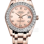 Basic Information Number 81159 – Silver Dial Brand: Rolex Series: PEARLMASTER Movement Type: Automatic Mechanical Gender: Women’s Movement Model: Cal. 2235 Movement Type: Automatic Mechanical Manufacturer: Rolex Movement Diameter: 20 mm Movement Thickness: 5.95 mm Frequency: 28,800 vibrations per hour Hairspring: Parachrom Shock-resistant Paraflex Jewel count: 31; Power reserve: 48 hours; Technical certification: Superlative Chronometer certification; Appearance: Case diameter: 34mm; Case thickness: Not available; Dial color: Silver-grey; Dial shape: Round; Strap color: Silver; Clasp type: Concealed crown clasp; Case back: Solid; Weight: Not available; Water resistance: 100 meters; Hour markers: Roman numerals/diamond-set; Clasp spacing: Not available; Lug spacing: Not available; Materials: Case material: 18k white gold; Diamond-set dial material: Not available; Bezel material: Diamond-set; Crystal material: Scratch-resistant sapphire crystal glass, anti-reflective; Cyclops lens with magnifying date window; Crown material: Screw-down Twinlock double waterproof system; Strap material: 18k white gold, pearl-style, five-link circular clasp material: 18k white gold; Functions: Date display