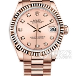 Basic Information: Number 81318 Champagne VI Diamond Dial; Brand: Rolex; Series: PEARLMASTER; Movement Type: Automatic; Gender: Women’s; Movement Model: Cal. 2235; Manufacturer: Rolex; Movement Diameter: 20mm; Movement Thickness: 5.95mm; Frequency: 28,800 vibrations per hour; Hairspring: Parachrom; Shock-resistant: Paraflex. Jewel count: 31; Power reserve: 48 hours; Case diameter: 34mm; Case thickness: Not available; Dial color: Champagne; Dial shape: Round; Strap color: Gold; Clasp type: Folding clasp, concealed folding crown clasp; Case back: Solid; Weight: Not available; Water resistance: 100 meters; Hour markers: Roman numerals/diamond set; Clasp spacing: Not available; Lug spacing: Not available; Materials: Case material: 18k gold; Dial material: Enlarged VI numerals with rubies; Bezel material: Diamond set; Crystal material: Scratch-resistant sapphire crystal glass, anti-reflective; Cyclops lens with 2.5x magnification (date window); Crown material: 18k gold; Strap material: 18k gold, pearl-embellished, five-link bracelet; Clasp material: 18k gold; Functions: Date display