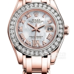 Basic Information Number 81319-0006 Brand Rolex Series PEARLMASTER Movement Type Automatic Mechanical Gender Ladies’ Movement Movement Model Cal. 2235 Movement Type Automatic Mechanical Manufacturer Rolex Movement Diameter 20mm Movement Thickness 5.95mm Frequency 28,800 vibrations per hour Hairspring Parachrom Shock-resistant Paraflex Jewels 31 Power Reserve 48 hours Technical Certifications Superlative Chronometer Certification Appearance Case Diameter: 34mm Case Thickness: Not available Dial Color: White Dial Shape: Round Strap Color: Silver Clasp Type: Folding Clasp Case Back: Solid Case Back Weight: Not available Water Resistance: 100 meters Hour Markers: Roman numerals Clasp Spacing: Not available Lug Spacing: Not available Materials Case Material 18k White Gold Dial Material Mother-of-Pearl Bezel Material Not available Crystal Material Sapphire Crystal Crown Material 18k White Gold Strap Material 18k White Gold Clasp Material 18k White Gold Functions Date Display