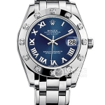Basic Information Number 81338 Mother-of-Pearl Brand: Rolex Series: PEARLMASTER Movement Type: Automatic Mechanical Gender: Women’s Movement Model: Cal. 2235 Movement Type: Automatic Mechanical Manufacturer: Rolex Movement Diameter: 20 mm Movement Thickness: 5.95 mm Frequency: 28,800 vibrations per hour Hairspring: Parachrom Shock-resistant Paraflex Jewel count: 31; Power reserve: 48 hours; Technical certification: Superlative Chronometer certification; Appearance: Case diameter: 34 mm; Case thickness: Not available; Dial color: Silver-grey; Dial shape: Round; Strap color: Gold; Clasp type: Folding clasp, concealed folding crown buckle; Case back: Not available; Weight: Not available; Water resistance: 100 meters; Hour markers: Roman numerals; Clasp spacing: Not available; Lug spacing: Not available; Materials: Case material: 18k gold; Dial material: White mother-of-pearl; Bezel material: 18k gold with diamonds, outer ring set with diamonds; Crystal material: Scratch-resistant sapphire crystal glass, anti-reflective; Cyclops lens with 2.5x magnification (date window); Crown material: 18k gold; Strap material: 18k gold with diamonds and pearls; Lady style, vine pattern, five-link chain clasp material: 18k gold; Functions: Date display.