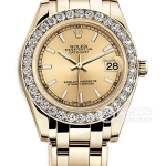 Basic Information Number: m81318-0018 Brand: Rolex Series: PEARLMASTER Movement Type: Automatic Gender: Women’s Movement Model: Cal.2235 Movement Type: Automatic Manufacturer: Rolex Movement Diameter: 20mm Movement Thickness: 5.95mm Frequency: 28,800 vibrations per hour Hairspring: Parachrom Shock Absorber: Paraflex Jewel count: 31; Power reserve: 48 hours; Technical certification: Superlative Chronometer certification; Appearance: Case diameter: 34 mm; Case thickness: Not available; Dial color: Gold; Dial shape: Round; Strap color: Gold; Clasp type: Folding clasp, concealed crown buckle; Case back: Solid; Weight: Not available; Water resistance: 100 meters; Hour markers: Bat markers; Luminous; Clasp spacing: Not available; Lug spacing: Not available; Materials: Case material: 18k gold; Dial material: Not available; Bezel material: 18k gold with diamonds; Crystal material: Scratch-resistant sapphire crystal, anti-reflective; Cyclops lens with magnifying date window; Crown material: 18k gold; Strap material: 18k gold, pearl-shaped, five-link clasp; Clasp material: 18k gold; Functions: Date display