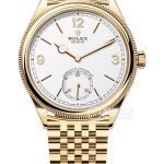 Basic Information Number M52508-0008 Brand Rolex Series Perpetual 1908 Movement Type Automatic Mechanical Gender Men’s Movement Movement Model 7140 Movement Type Automatic Mechanical Manufacturer Rolex Balance Wheel Inertia Fine Adjustment Balance Wheel Frequency 28,800 rpm Hairspring Patented Geometry Syloxi Silicon Hairspring Shock Absorption High-Performance Paraflex Shock Absorption Jewels 38 Power Reserve 66 Hours Technical Certification Superlative Chronometer Appearance Case Diameter: 39 mm Case Thickness: 9.5 mm Dial Color: White Dial Shape: Round Strap Color: Gold Clasp Type: Concealed Folding Crown Buckle Case Back: Transparent Weight: Not Available Water Resistance: 50 meters Hour Marker Type: Bat Hour Markers Clasp Spacing: Not Available Lug Spacing: 20 mm Materials: Case material: 18k gold; Dial material: Not specified; Bezel material: 18k gold; Crystal material: Sapphire crystal glass; Crown material: 18k gold; Strap material: 18k gold; Buckle material: 18k gold; Functions: This watch has no other special functions.