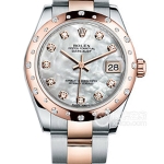 Basic Information Number 178159 White Mother-of-Pearl Brand Rolex Series Women’s Datejust Movement Type Automatic Gender Women’s Movement Model Cal. 2235 Movement Type Automatic Manufacturer Rolex Movement Diameter 20mm Movement Thickness 5.95mm Frequency 28800 RPM Hairspring Parachrom Shock Absorber Paraflex Jewel count: 31; Power reserve: 48 hours; Technical certification: Superlative Chronometer; Appearance: Case diameter: 31 mm; Case thickness: Not available; Dial color: White; Dial shape: Round; Strap color: Silver; Clasp type: Folding clasp, concealed folding crown buckle; Case back: Solid; Weight: Not available; Water resistance: 100 meters; Hour markers: Roman numerals; Clasp spacing: Not available; Lug spacing: Not available; Materials: Case material: 18k white gold with diamonds; Dial material: Mother-of-pearl with diamonds; Bezel material: 18k white gold with diamond-set outer ring; Crystal material: Scratch-resistant sapphire crystal glass, anti-reflective; Cyclops lens with 2.5x magnification (date window); Crown material: 18k white gold; Strap material: 18k white gold, President type, semi-circular three-link clasp material: 18k white gold; Functions: Date display
