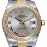 Basic Information Number 178159 White Mother-of-Pearl VI Diamond Set Brand Rolex Series Women’s Datejust Movement Type Automatic Gender Women’s Movement Model Cal. 2235 Movement Type Automatic Manufacturer Rolex Movement Diameter 20mm Movement Thickness 5.95mm Frequency 28800 RPM Hairspring Parachrom Shock Absorber Paraflex Jewel count: 31; Power reserve: 48 hours; Technical certification: Superlative Chronometer; Appearance: Case diameter: 31 mm; Case thickness: Not available; Dial color: White; Dial shape: Round; Strap color: Silver; Clasp type: Folding clasp, concealed folding crown buckle; Case back: Solid; Weight: Not available; Water resistance: 100 meters; Hour markers: Roman numerals; Clasp spacing: Not available; Lug spacing: Not available; Materials: Case material: 18k white gold with diamonds; Dial material: Mother-of-pearl with diamonds; Enlarged VI Roman numerals with diamonds; Bezel material: 18k white gold with diamonds, outer ring with diamonds; Crystal material: Scratch-resistant sapphire crystal glass, anti-reflective; Cyclops lens with 2.5x magnification (date window); Crown material: 18k white gold; Strap material: 18k white gold, President type, semi-circular three-link clasp material: 18k white gold; Functions: Date display