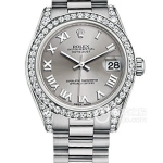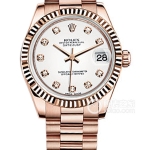 Basic Information: ID 178245 Brown Roman Dial Brand: Rolex Series: Women’s Datejust Movement Type: Automatic Gender: Women’s Movement Model: Cal. 2235 Movement Type: Automatic Manufacturer: Rolex Movement Diameter: 20mm Movement Thickness: 5.95mm Frequency: 28,800 vibrations per hour Hairspring: Parachrom Shock Absorber: Paraflex Jewel count: 31; Power reserve: 48 hours; Technical certification: Superlative Chronometer; Appearance: Case diameter: 31 mm; Case thickness: Not available; Dial color: Brown; Dial shape: Round; Strap color: Gold; Clasp type: Folding clasp, concealed folding crown buckle; Case back: Solid; Weight: Not available; Water resistance: 100 meters; Hour markers: Roman numerals; Clasp spacing: Not available; Lug spacing: Not available; Materials: Case material: 18k rose gold; Dial material: Not available; Bezel material: 18k rose gold, domed outer ring; Crystal material: Scratch-resistant sapphire crystal, anti-reflective; Cyclops lens with 2.5x magnification (date window); Crown material: 18k rose gold; Strap material: 18k rose gold, President type, semi-circular three-link clasp material: 18k rose gold; Functions: Date display