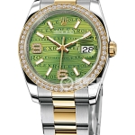 Basic Information Number 178383-72163 VI Brand Rolex Series Lady-Datejust Movement Type Automatic Mechanical Gender Ladies Movement Type Automatic Mechanical Technical Certification Super Chronometer Certification Appearance Case Diameter: 31 mm Case Thickness: Not Available Dial Color: Green Dial Shape: Round Strap Color: Two-tone Clasp Type: Folding Clasp Case Back: Not Available Weight: Not Available Water Resistance: 100 meters Hour Marker Type: Roman Numerals Clasp Spacing: Not Available Lug Spacing: Not Available Materials Case Material: Stainless Steel Dial Material: Not Available Bezel Material: 18k Yellow Gold with Diamond-set Outer Ring Crystal Material: Sapphire Crystal Glass Crown Material: Not Available Strap Material: 18k Yellow Gold and Stainless Steel; Two-tone Clasp Material: Stainless Steel Functions Date Display