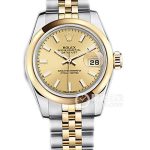 Basic Information Number: 179163-63133 Brand: Rolex Series: Women’s Datejust Movement Type: Automatic Gender: Women’s Movement Model: Cal. 2235 Movement Type: Automatic Manufacturer: Rolex Movement Diameter: 20mm Movement Thickness: 5.95mm Frequency: 28,800 vibrations per hour Hairspring: Parachrom Shock Absorber: Paraflex Jewel count: 31; Power reserve: 48 hours; Technical certification: Superlative Chronometer certification; Appearance: Case diameter: 26mm; Case thickness: Not available; Dial color: Champagne; Dial shape: Round; Strap color: Two-tone; Clasp type: Folding clasp, Oyster clasp with 5mm Easylink extension system; Case back: Not available; Weight: Not available; Water resistance: 100 meters; Hour markers: Bat markers; Clasp spacing: Not available; Lug spacing: Not available; Materials: Case material: Stainless steel; Dial material: Not available; Bezel material: 18k gold, domed outer ring; Crystal material: Scratch-resistant sapphire crystal, anti-reflective; Cyclops lens (2.5x) for date window; Crown material: 18k gold; Strap material: 18k gold/stainless steel, two-tone, Jubilee, five-link clasp material: Stainless steel; Functions: Date display